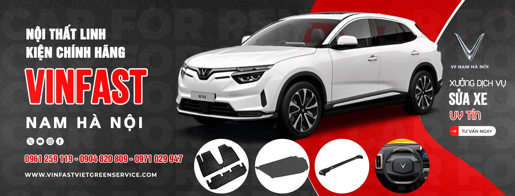 CÔNG TY CỔ PHẦN KỸ THUẬT Ô TÔ VIỆT GREEN (Xưởng Dịch Vụ Vinfast Nam Hà Nội) là đơn vị 2S chính hãng VinFast, chuyên cung cấp dịch vụ Sửa chữa – Bảo dưỡng – Bảo hành cho toàn bộ các dòng xe VinFast. Với vị trí thuận tiện tại Văn Phú – Thường Tín – Hà Nội, xưởng dịch vụ của chúng tôi được xây dựng theo tiêu chuẩn VinFast, đảm bảo mang đến trải nghiệm chuyên nghiệp – minh bạch – nhanh chóng cho mọi khách hàng. Chúng tôi hiểu rằng chiếc xe của bạn không chỉ là phương tiện di chuyển, mà còn là tài sản giá trị và người bạn đồng hành mỗi ngày. Vì vậy, Xưởng Dịch Vụ Vinfast Nam Hà Nội luôn nỗ lực mang đến những dịch vụ tốt nhất, an toàn nhất và đáng tin cậy nhất. Xưởng dịch vụ của Xưởng Dịch Vụ Vinfast Nam Hà Nội được trang bị: